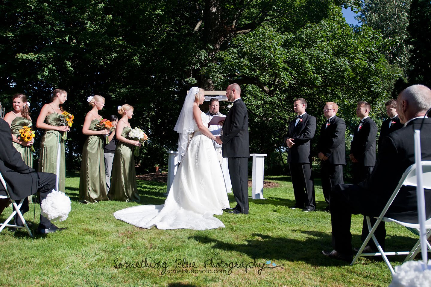 A few weeks ago Erin and I traveled to Avon, NY for Beth and Will Brown's Wedding at the Charlton Farms Inn. From beginning to end we could tell that the happy couple have great country style. The entire wedding had a fresh but unique flare that was shown through the sage green bridesmaid dresses, mason jars filled with country field flowers, and a good old pig roast barbecue. Beth's dress was a beautifully inspired vintage lace gown that was complimented by her vintage veil borrowed from her mother. The groom plus the groomsmen wore camouflage vests that matched the color and theme of the country-chic wedding. They ended the night dancing away underneath the lights of the tent. All in all Erin and I had a great time and we wish Beth and Will the best!
